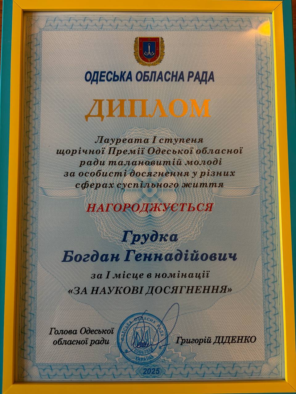 Богдан Геннадійович був удостоєний диплома І ступеня у номінації «За наукові досягнення»